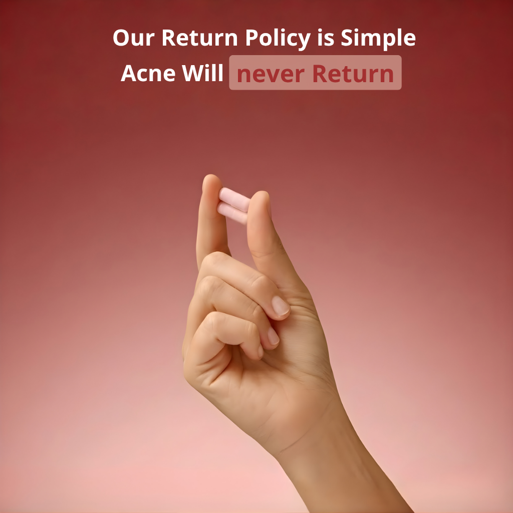 OUR RETURN POLICY IS SIMPLE, ACNE WILL NEVER RETURN